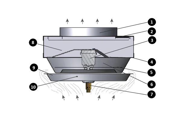 Działa w oparciu o ruch obrotowy perforowanej płyty, która skutecznie usuwa cząsteczki tłuszczu z wywiewanego powietrza większe niż 3 μm.